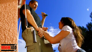 Fekete hajú Uma Jolie hatalmas faszos szabadtéri medence baszása